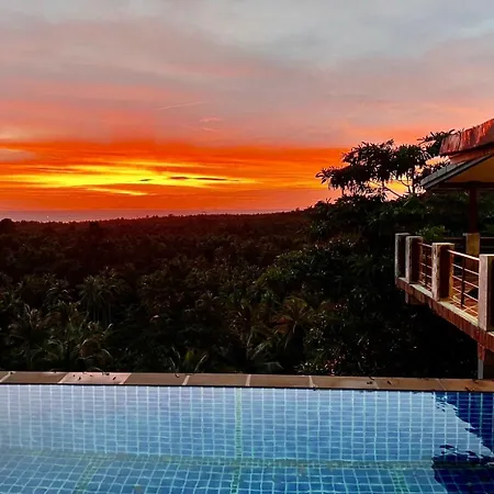 Guests can enjoy a seaside sea view from a terrace at Skyline Chalok Baan Kao Villa Hinkong, a 10-minute drive from the C&M Koh Phangan Vocational School and Culture Center.